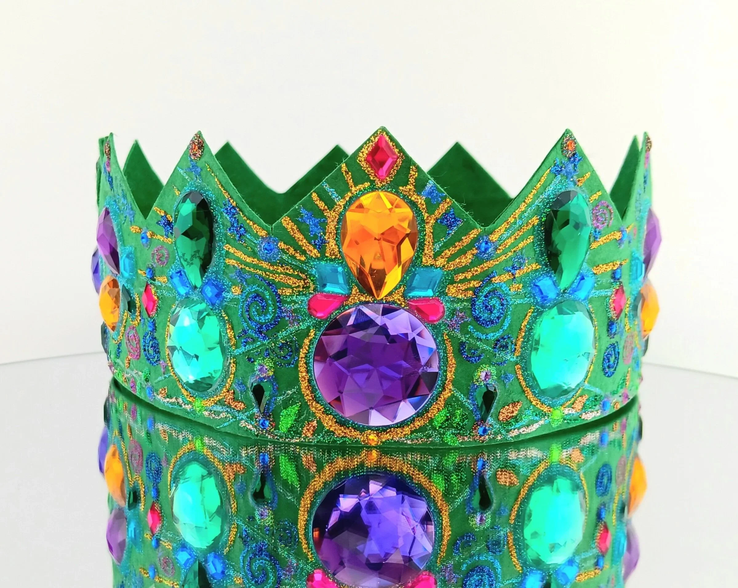 With proper care, your luxury handmade Paper Crown by Artisan Party Supply will last for generations! (However, we advise you to keep the crowns away from direct sunlight to prevent colors from fading. Protect the crowns from water/moisture, take care not to create a crease/fold in the crown, and be cautious not to leave crowns unattended with children as it may be possible to peel the gems off or the metal shims or magnets out creating a sharp and/or choking hazard.)